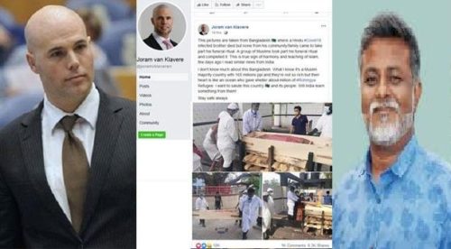 At around 11 pm on Wednesday (April 22nd), the Muslim convert posted three photos of a funeral at Masdai’s crematorium on his Facebook page, Joram Van Claveren. He also wrote a status praising Bangladesh. 14,000 likes, 1100 comments, and 6,200 people have shared his status.